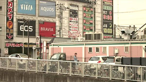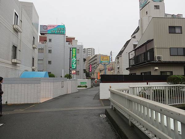 沿著停車場往河邊走,橋的對岸林立了不少HOTEL,這邊是劇中設定的紅燈區,