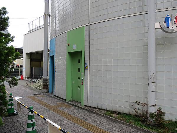 對面的LUMINE百貨旁邊有一個綠色的廁所門,